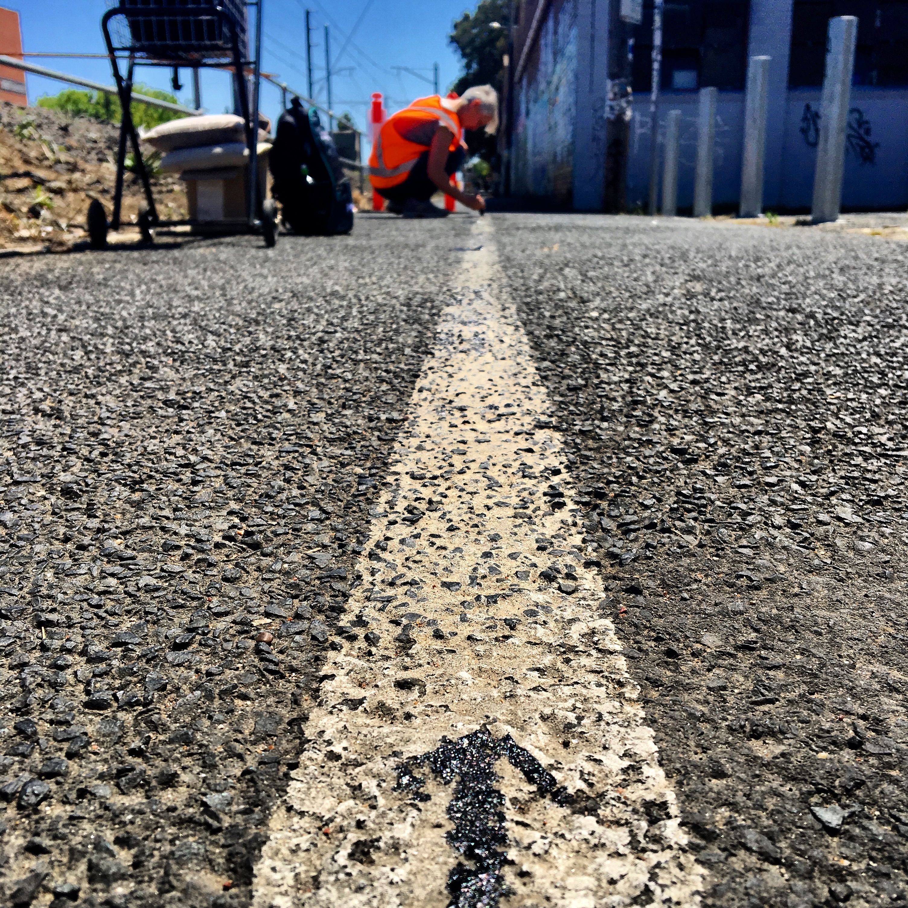 A Narrow Road to the Deep North is a durational writing performance conceived as a meditation on the urban landscape, the experience of place and the power of walking. From 11 November 2019, Illimine wrote 10km of linked poems along the Upfield Bike Path in Melbourne, Australia, stitching together the north and the south of Moreland, two areas usually divided by the symbolic border of Bell Street. The writing is the result of the encounter with people and places, inscribed on the landscape that it narrates.