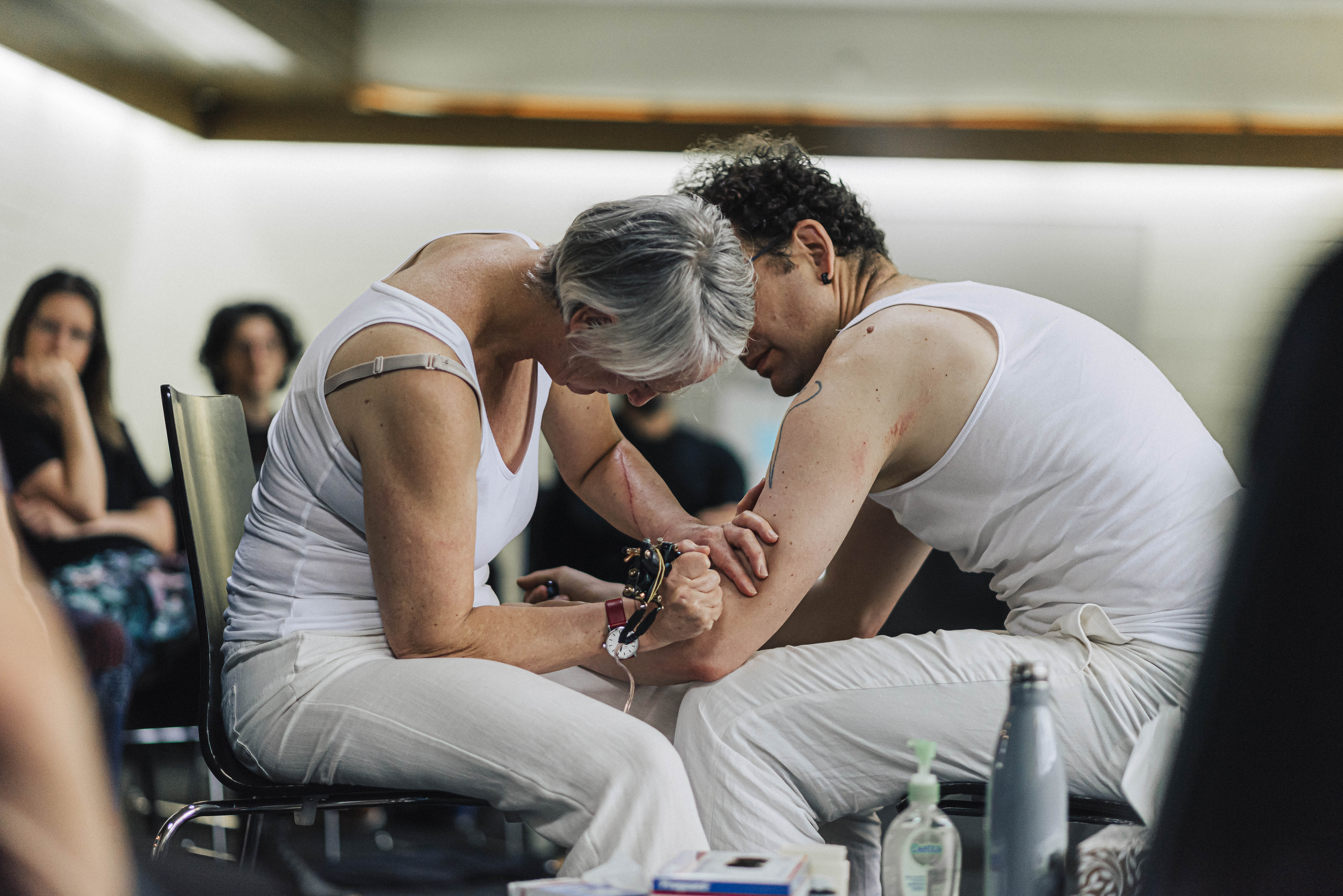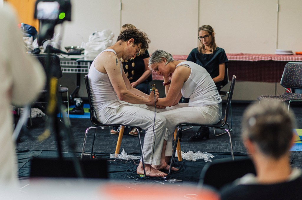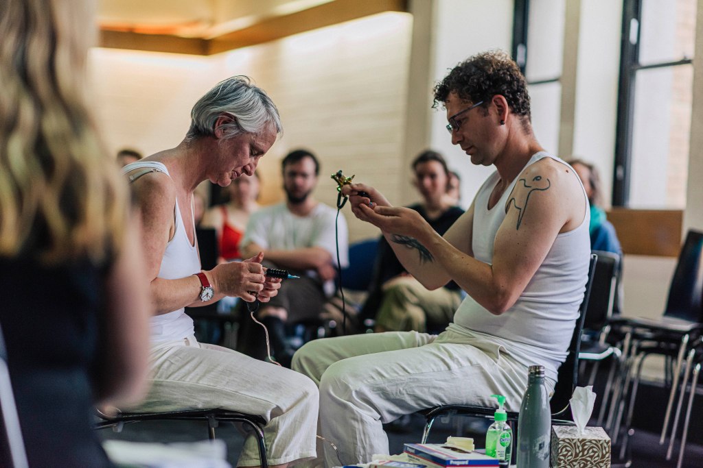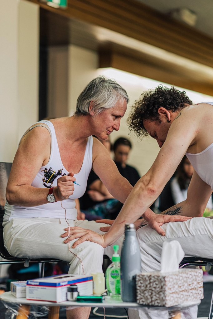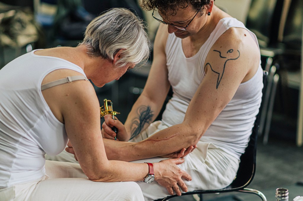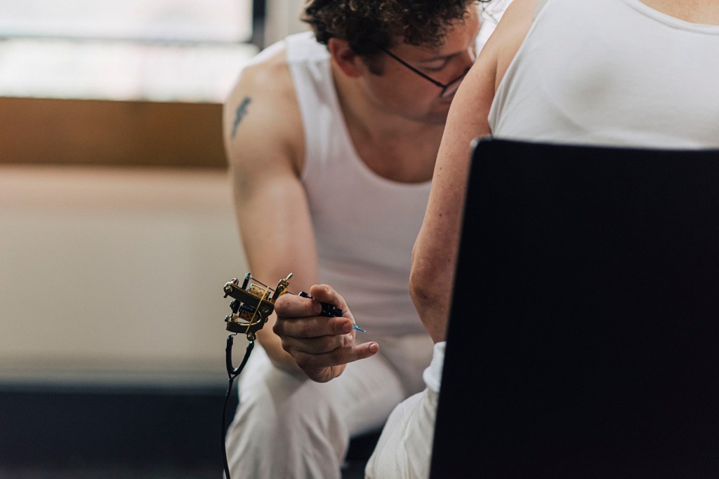 Reciprocal tattooing performance at the George Paton Gallery Nov 2, 2019.